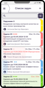 - После создания задача отправляется менеджерам, отмечаемая для них отдельным жёлтым цветом, для визуального отделения поставленных высшим руководством задач