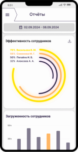 - Возможность аналитики эффективности работы сотрудников благодаря системе оценивания и единому учёту рабочего времени